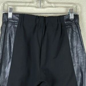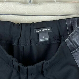 Club Monaco Leggings Women's Sz 6 Skinny Elastic Waist Pull on Mid Rise Ankle Faux Leather Side Panel Zip Pocket Black