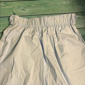 Chic A-line skirt with a stylish tie waist. Perfect for casual or dressy occasions. Beautiful cotton linen sky blue skirt. Elastic waistband in the back with a front eye that can be worn in a knot or a bow. The fabric is that of a dress shirt. EUC