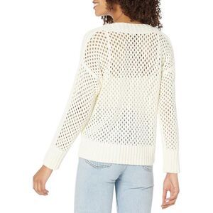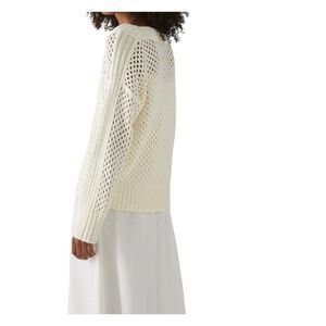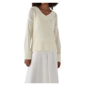 Club Monaco Light Cream Crochet Style Jumper V Neck Sweater Long Sleeve Womens L