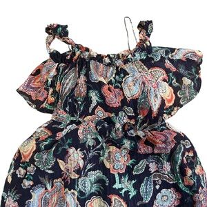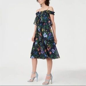 Club Monaco Lonti 100% Silk Tiered Floral Black Dress Pink Floral Print Flowy 00