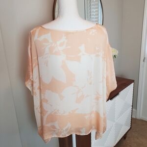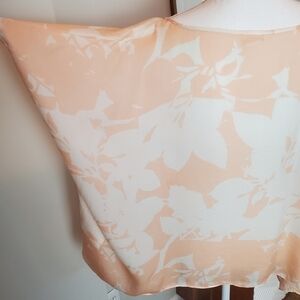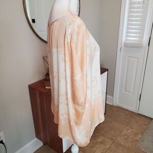Club Monaco Medium Silk Blouse Peach floral Drapy Flowy High Low Poncho