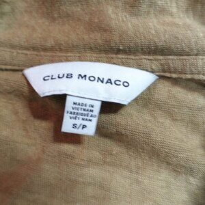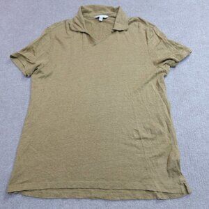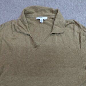 Club Monaco Mens Polo Shirt Small Yellow Mustard V-Neck 100% Linen