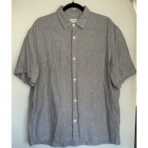 Club Monaco Men's XL Linen Blend Stripe Blue Short Sleeve Button Down Shirt