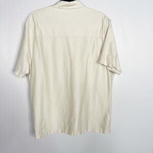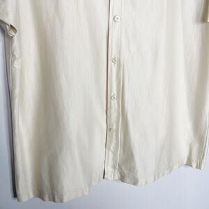 Club Monaco Mens XLarge XL Cream Short Sleeve Button Front Shirt Cotton Collared