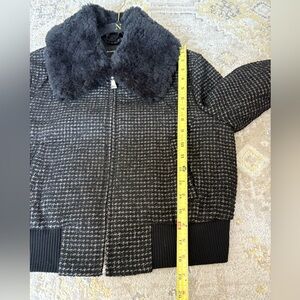 Club Monaco Mixed Media Bomber Jacket. Size medium. Removable fur collar. Zip front. Excellent condition.