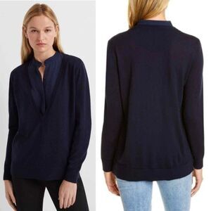 Club Monaco Mixed Media Merion Navy V-Neck Sweater Size Small