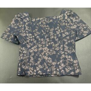 Club Monaco NWT Brocade Puff Sleeve Blouse in Blue Multi in Size 2 MSRP $149.50