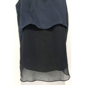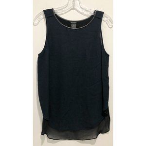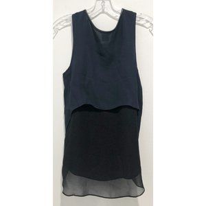 Club Monaco Navy Overlaying Black Sheer Sleeveless Blouse with Faux Leather Trim