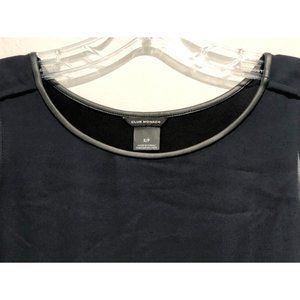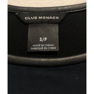 Club Monaco Navy Black Blouse W/ Faux Leather Trim