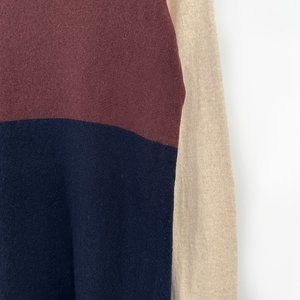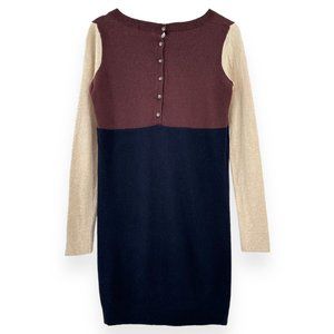 Club Monaco Navy Cream Brown Wool Cashmere Colorblock Mini Knit Sweater Dress