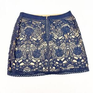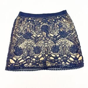 Club Monaco Navy Lace Straight Overlay Mini Skirt Size 12