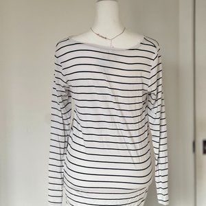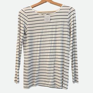 Club Monaco Navy Striped Long Sleeve Linen