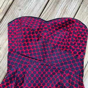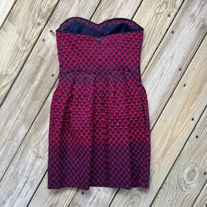 Club Monaco Nelly Red And Blue Heart Print Strapless Cocktail Dress Size 0