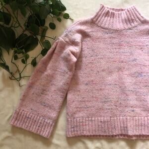In good preowned condition. Great quality, made from Italian yarn. Pink knit with rainbow marled flecks. Wide sleeves.