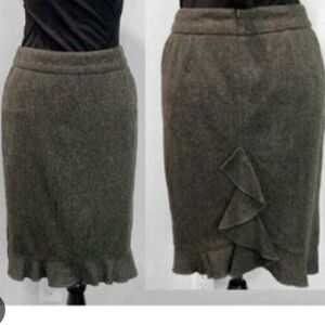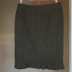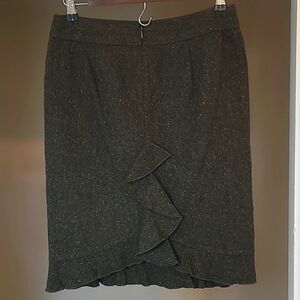 Club Monaco Olive Wool & Silk Tweed Ruffle Hem and Fishtail Pencil Skirt