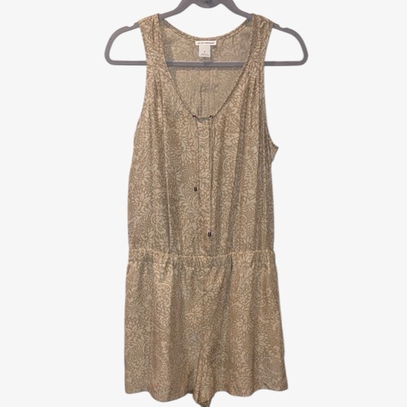 Club Monaco Paisley Silk Sleeveless Racerback Snap Front Romper Size 4 Tan