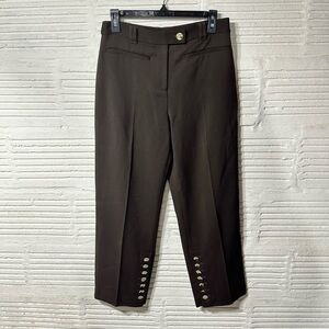Club Monaco Pants 6 Wool Blend Brown Dress Cropped Trousers Button Ankles