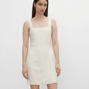 Club Monaco Pinstripe Square Neck Linen Blend Minidress In Stripe Ivory 14 NWT