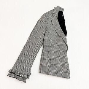 Club Monaco Plaid Patterned Blazer Ruffle Hem Size 2