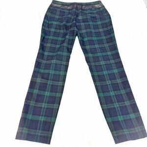 Club Monaco Plaid Patterned Straight Leg Green Slack Pants Leather Banded Size 4