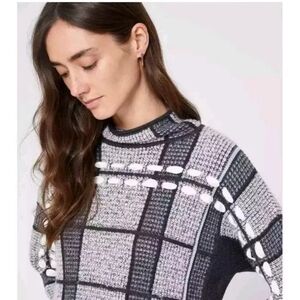 Club Monaco Plaid Woven Sweater Wool Blend Mock Neck Pullover Gray Womens Small