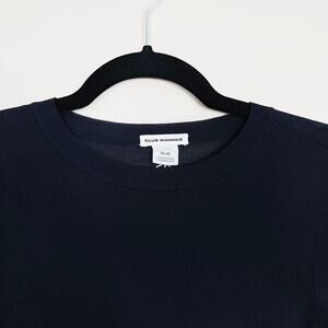 Club Monaco Pleated Asymmetrical Knit Top Navy Blue Womens Medium M Viscose
