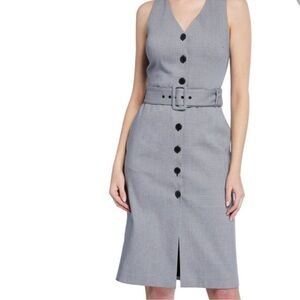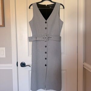 Elegant Club Monaco Pritha gray & blue plaid belted dress perfect for any occasion. Features a stylish button-down front and a flattering fit. Fully lined and hits at knees. Excellent condition !