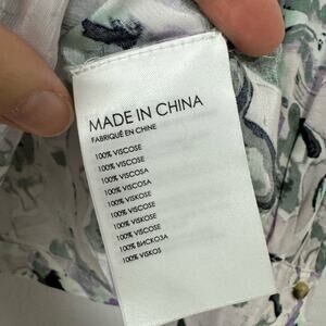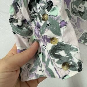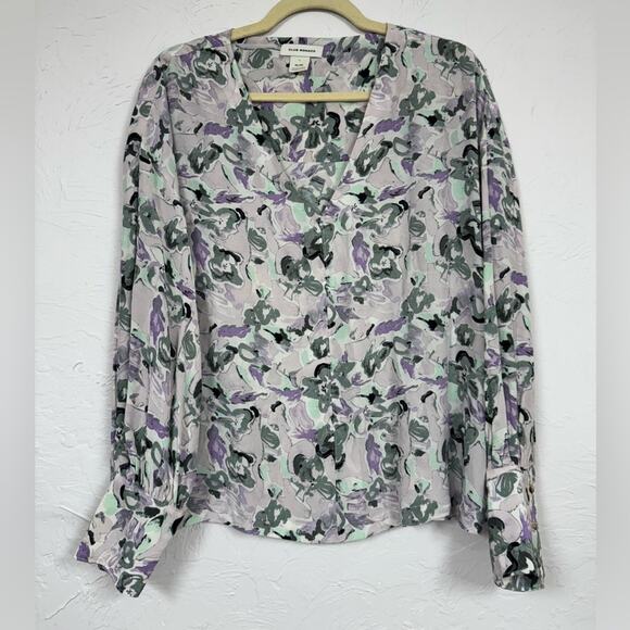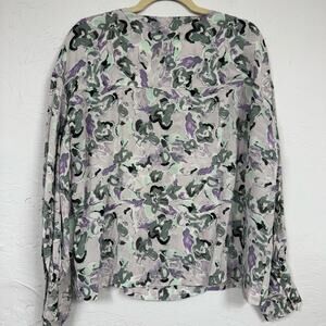 Club Monaco Purple Green Floral Boho Blouse Womens XL Peasant Long Sleeve Shirt
