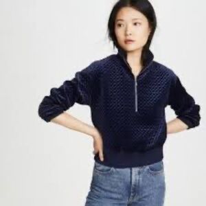 Club Monaco Pullover Jacket Quilted Velour Quarter Zip Tricot Navy/Bleu Marine