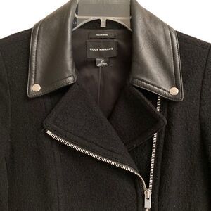 Club Monaco Reeta Italian Wool Leather Moto long jacket women’s S biker trench c