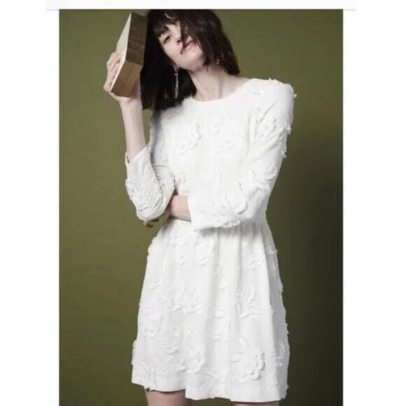 A textural take on a classic silhouette, Club Monaco's Roan dress features a raised floral applique pattern and tactile waist detail with subtle fraying. Bracelet-length sleeves make it the perfect option for winter evenings. Pair it with minimal accessories for a sophisticated feel.