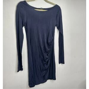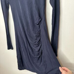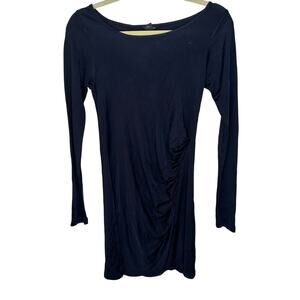 Club Monaco Jet Black Stretchy Bodycon Long Sleeve Scoop Neck Side Ruched Mini Dress
