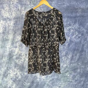 Club Monaco Sheer Tunic Top Black Floral 100% Silk Sz 4