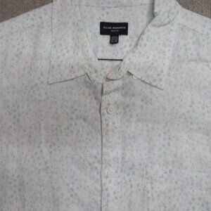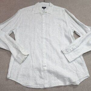 Club Monaco Shirt XL White Floral 100% Linen Button Front