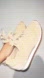 Color: The sneakers are a neutral, creamy beige/tan color.