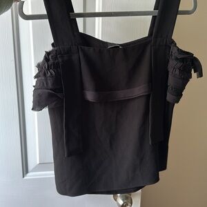 Super cute top with an off the shoulder frill and beaded sleeve!