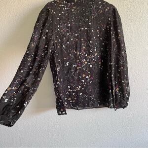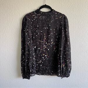 Club Monaco Silk Blend Sheer Floral Print Blouse
