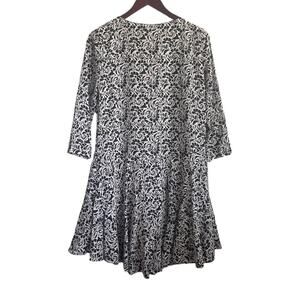 Club Monaco Silk Dress 4 Black White Whimsical Floral Fairy Boho Cottagecore