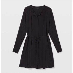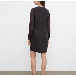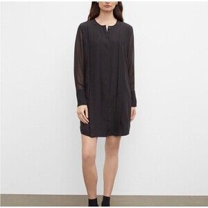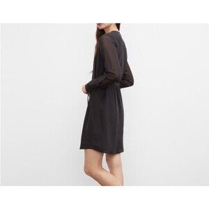 Club Monaco Silk Dress Womens Size 10 Black Button Front Long Sleeve Mini Dress