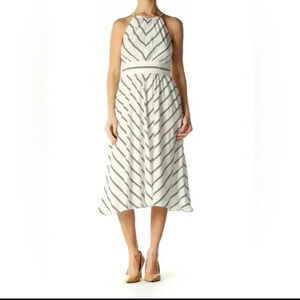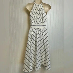 Club Monaco Silk White Stripe Halter Dress Lined size 0 L17