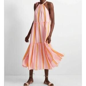 Club Monaco Size 2 Amirra Pink Stripe Layered Halter Sleeveless Midi Silk Dress