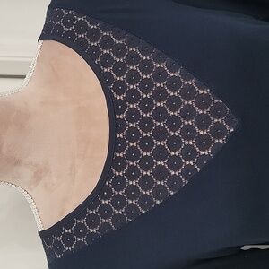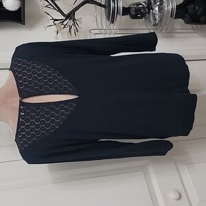 Club Monaco Size M Navy Blue Long Sleeve Tee With Lace V-Neck