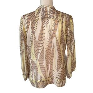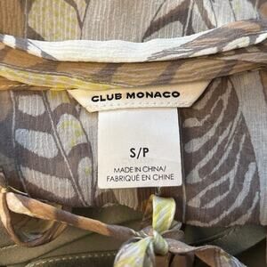 Club Monaco Size S 100% Silk Blouse Leaf Print Tropical Tie Neck