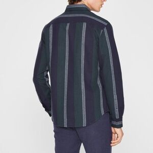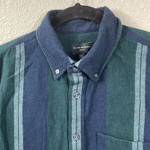 Club Monaco Slim Fit Stripe Doubleface Long Sleeve Shirt Flannel Blue Green Sz M