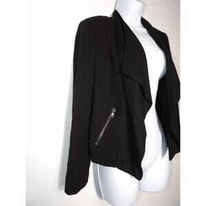 Club Monaco Small Open Style Blazer Drape Neck Zip Pockets Black