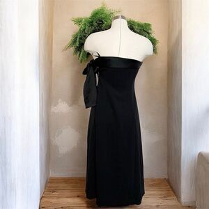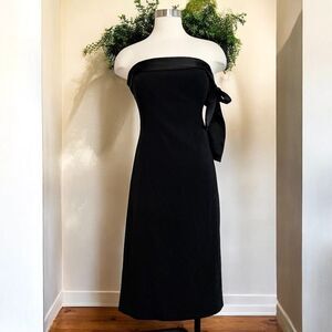 Club Monaco Strapless Black Midi Knee Length Dress Bodycon Pencil Satin Bow 90s