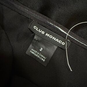 Club Monaco black strapless knee length fitted pencil dress with a side zipper. Contrasting satin trim that ties into a bow on the side at the bust.