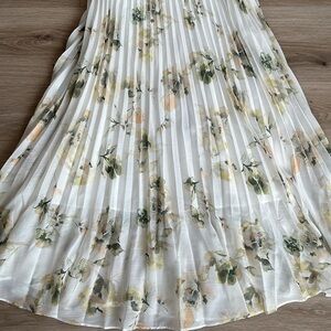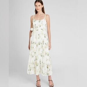 This midi dress is crafted from a softly crinkled georgette in our seasonal watercolor floral for understated elegance. Designed with a pintucked bodice, pleated full skirt, and self-belt that defines the waist.