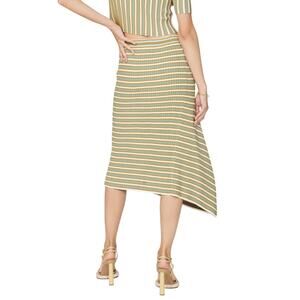 Green striped knit (79% Viscose, 21% Nylon). A-line. Pull on. 17.5" from waist to hemline. Imported.