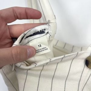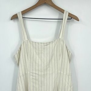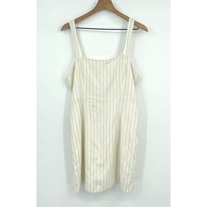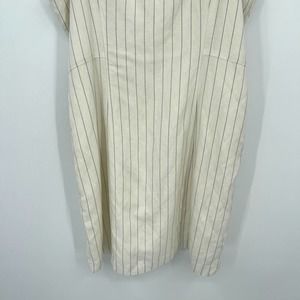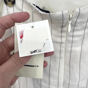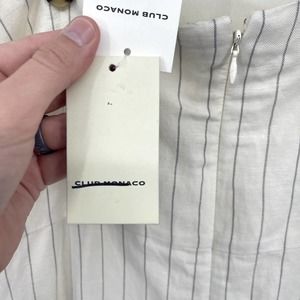 Club Monaco Striped Square Neck Mini Dress Sz 12 Off White Black Linen Blend NEW